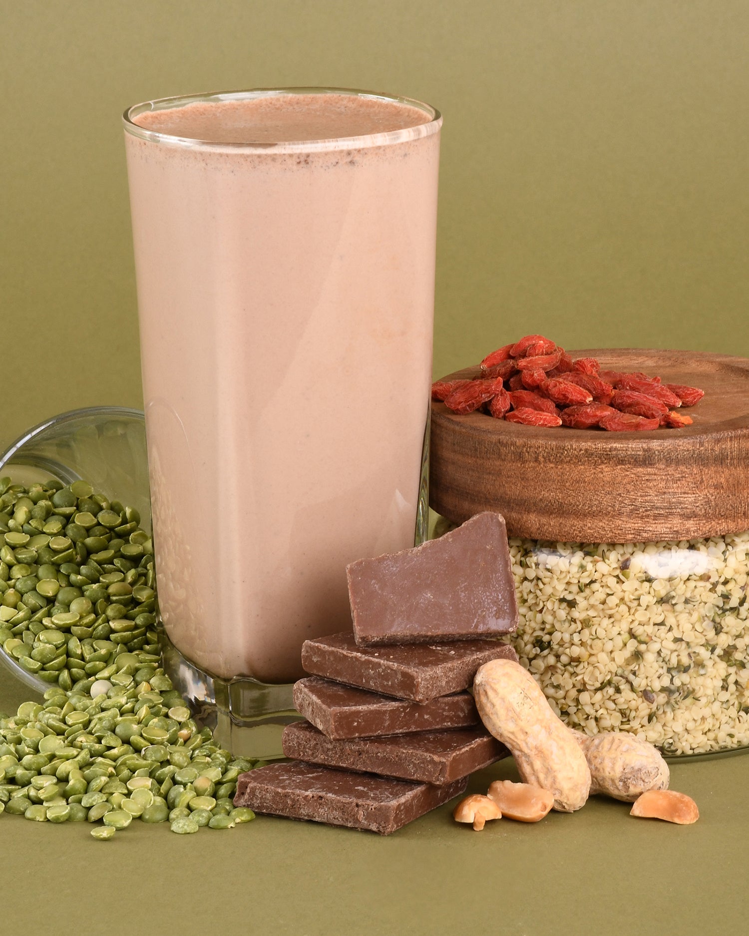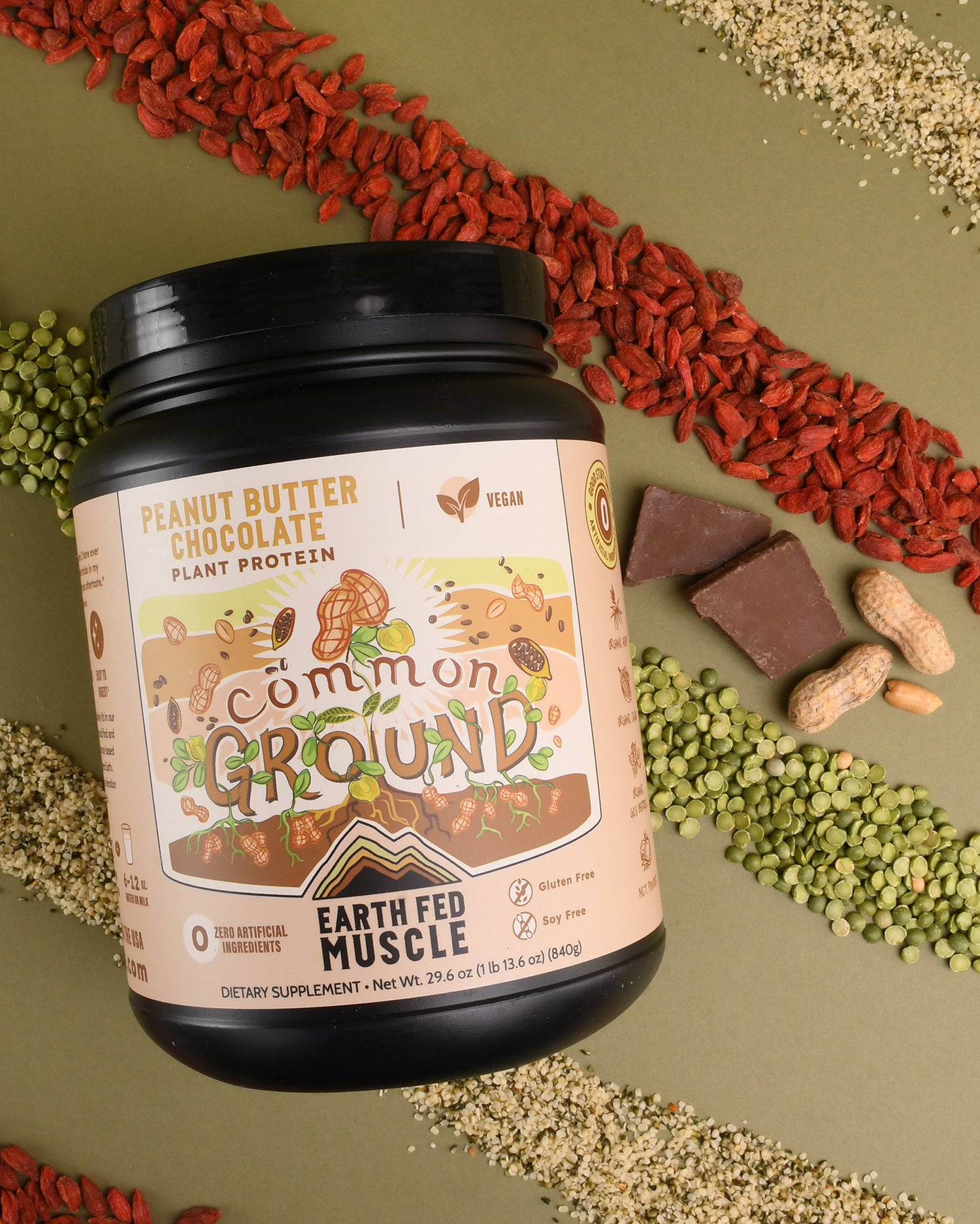 Ingredients:Organic Protein Blend (Organic Pea Protein, Organic Goji Juice Powder, Organic Hemp Protein Powder), Peanut Flour, Organic Cocoa Powder, MCT Powder (Medium Chain Triglycerides, Gum Acacia, Silicon Dioxide), Natural Flavor, Organic Stevia, Guar Gum, Salt